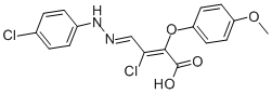 3-CHLORO-4-[2-(4-CHLOROPHENYL)HYDRAZONO]-2-(4-METHOXYPHENOXY)BUT-2-ENOIC ACID