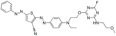 2-[[4-[Ethyl[2-[[4-fluoro-6-[(2-methoxyethyl)amino]-s-triazine-2-yl]oxy]ethyl]amino]phenyl]azo]-5-(phenylazo)thiophene-3-carbonitrile