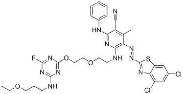 2-(Phenylamino)-5-[(4,6-dichlorobenzothiazole-2-yl)azo]-6-[[2-[2-[[4-[(3-ethoxypropyl)amino]-6-fluoro-1,3,5-triazine-2-yl]oxy]ethoxy]ethyl]amino]-4-methyl-3-pyridinecarbonitrile