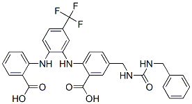 Benzoic acid, 2-[[2-[(2-carboxyphenyl)amino]-5-(trifluoromethyl)phenyl]amino]-5-[[[[(phenylmethyl)amino]carbonyl]amino]methyl]-