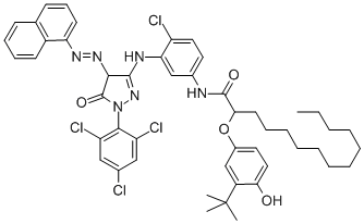 2-(3-tert-Butyl-4-hydroxyphenoxy)-N-(4-chloro-3-((4,5-dihydro-4-(1-naphthylazo)-5-oxo-1-(2,4,6-trichlorophenyl)-1H-pyrazol-3-yl)amino)phenyl)myristamide
