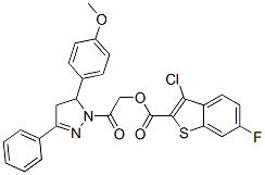 Benzo[b]thiophene-2-carboxylic acid, 3-chloro-6-fluoro-, 2-[4,5-dihydro-5-(4-methoxyphenyl)-3-phenyl-1H-pyrazol-1-yl]-2-oxoethyl ester (9CI)