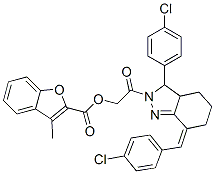 2-Benzofurancarboxylicacid,3-methyl-,2-[3-(4-chlorophenyl)-7-[(4-chlorophenyl)methylene]-3,3a,4,5,6,7-hexahydro-2H-indazol-2-yl]-2-oxoethylester(9CI)