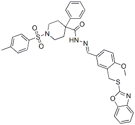 4-Piperidinecarboxylicacid,1-[(4-methylphenyl)sulfonyl]-4-phenyl-,[[3-[(2-benzoxazolylthio)methyl]-4-methoxyphenyl]methylene]hydrazide(9CI)