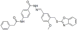 Benzoic acid, 4-[(phenylacetyl)amino]-, [[3-[(2-benzoxazolylthio)methyl]-4-methoxyphenyl]methylene]hydrazide (9CI)